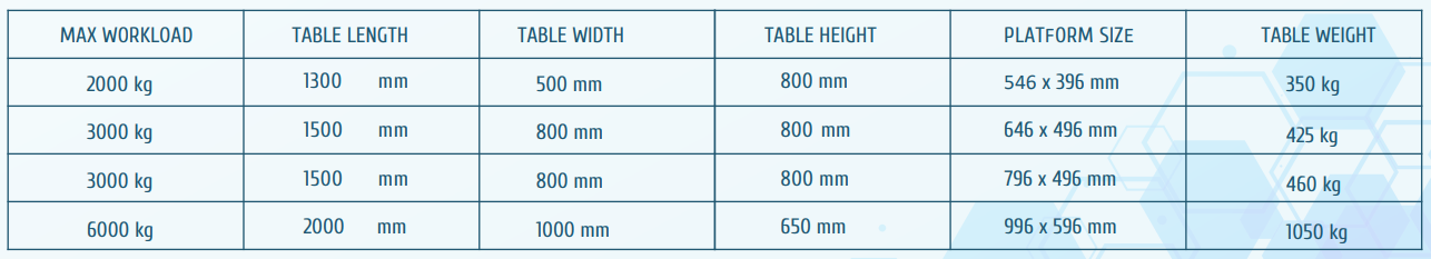 Very robust, welded, low frame construction. Table support platforms made of heat-treated 1.2312 steel guarantee high strength and durability. One platform is xed, the other is movable in the X axis. Both platforms rotate 360° with the possibility of blocking their position every 90°. Bumper and brake for the end position. Handles for easy operation. Oil-resistant rubber table top for putting away tools during mould operation. Table equipped with mechanical angles for securing the mould to the table top.